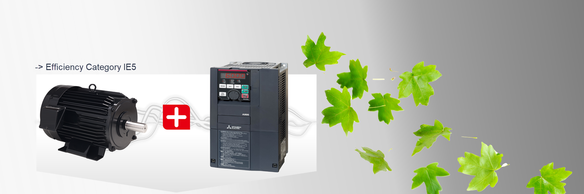 In combination with the frequency inverters from Mitsubishi Electric, the highest efficiency class IE5 can already be realised today. This provides a sustainable, economical and future-proof drive technology that relieves companies in the long term and prepares them for future requirements.